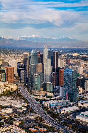 Downtown Los Angeles - Snow Peaked Mountains Aerial Fine Art Photography (Metal & Bamboo Prints)