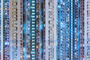 Hive - The Block Tower - Kowloon Hong Kong Night Photography (Metal & Bamboo Prints)