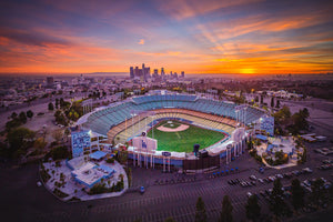 Los Angeles Dodgers Stadium at Sunset - Aerial Photography by Toby Harriman (Metal & Bamboo Prints)