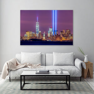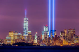 September 11 Tribute Lights with Statue of Liberty - New York City Skyline Fine Art Prints (Metal & Bamboo Prints)