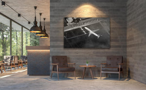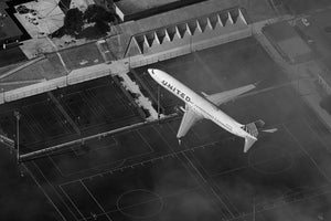 United 737 Departing out of San Diego International Airport N57439 - Black and White Aerial Photography (Metal & Bamboo Prints)