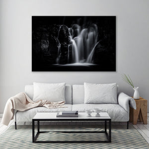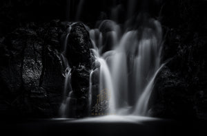 Waimea Falls Hawaii - Black and White Waterfall Fine Art Photography (Metal & Bamboo Prints)